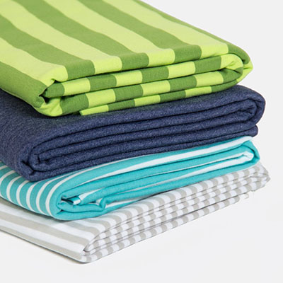 Baumwolljersey mit einem Elasthan-Anteil wird auch als Stretch- oder SingleJersey bezeichnet. Dieser Stoff ist nicht nur dehnbar, sondern auch elastisch, was bedeutet, dass er nach dem Dehnen wieder in seine ursprüngliche Form zurückkehrt.