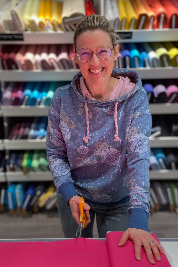 Um eine fundierte Ausbildung zu erhalten absolvierte ich die Modeschule. Da ich großen Wert auf schöne Farben, Qualität und Individualität lege, benähe ich als dreifache Mutter am liebsten meine Töchter und mich.